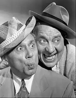 John Sigvard "Ole" Olsen (November 6, 1892 – January 26, 1963) and Harold Ogden "Chic" Johnson (March 5, 1891 – February 26, 1962) were American comedians of vaudeville, radio, the Broadway stage, motion pictures and television. Their shows were noted for their crazy blackout gags and orchestrated mayhem ("anything can happen, and it probably will"). Their most famous production was the stage musical (and later movie) Hellzapoppin.