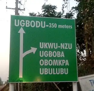 Road signage showing some Olukumi villages, Aniocha North, Delta State