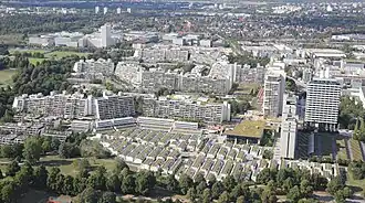 The Olympic Village (German: "Olympisches Dorf") was constructed for the 1972 Summer Olympics in Munich, Germany and was used to house the athletes during the games. The Munich massacre took place in one of its apartment blocks, Connollystraße 31; the street was named for an Irish-American participant in the 1896 Olympics.[1] The Olympic Village is in the north part of the Olympiapark.