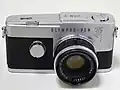 The Pen EM, produced from 1965 to 1966, is a motorized Pen model. It has a 35mm f/2 lens, and a CdS exposure meter allowing automatic or manual exposure.