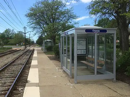 ![]() Onaway station westbound platform in May 2020 | |||||||||||
