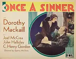 Once a Sinner is a 1931 American pre-Code romance film directed by Guthrie McClintic and written by George Middleton. The film stars Dorothy Mackaill, Joel McCrea, John Halliday, C. Henry Gordon, Ilka Chase and Sally Blane. The film was released on January 25, 1931, by Fox Film Corporation.[1][2][3]
