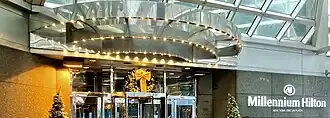 Lobby of Millennium Hilton Hotel of One and Two United Nations Plaza, Christmas, 2024. -