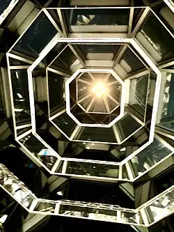 Using other reflective materials like polished marble and stainless steel "added to the delerium."[2] His desired kaleidoscopic outcome, always changing, was achieved.[2]