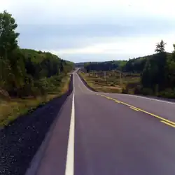 The Trans-Canada Highway Act was passed in 1950 and provided the impetus to construct Highway 17 around Lake Superior, which was carried out over the course of the decade.[11] This resulted in the planning of a new road to connect Highway 11 with Highway 17; it was decided that Highway 101 would be extended west as the new connector highway. In order to accommodate this future extension, the section of Highway 67 between Timmins and Hoyle was renumbered as Highway 101 in mid-1955.[12][13] On September 1, 1955, the route was extended west of Timmins to Warren Lake.[14] West of Warren Lake, Highway 616 and Highway 624 continued to the CNR stop in Foleyet; these would soon become part of Highway 101.[15] Highway 101 was opened to the Quebec border in December 1958 with the completion of the final 11.6 km (7.2 mi) gap. In addition, work began on December 18 to clear the route of the Foleyet to Chapleau Resource Road.[16] On April 1, 1960, Highway 616 and Highway 624 were renumbered as part of Highway 101,[17] making the highway 247.2 km (153.6 mi) long; it now connected Foleyet to the Quebec border.[18]