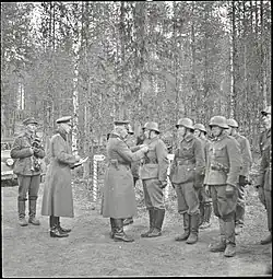 Salla was occupied by the Soviets during the invasion of Finland in 1939. German XXXVI Corps, consisting of both German and Finnish troops, was the main German force of the operation. The corps was commanded by General Hans Feige and was subordinate to the Army of Norway which was commanded by Nikolaus von Falkenhorst. XXXVI Corps was supported by Finnish III Corps commanded by Hjalmar Siilasvuo.[3][6]