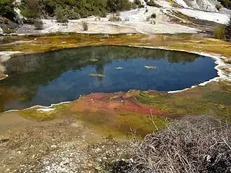 Orakei Korako is a highly active geothermal area most notable for its series of fault-stepped sinter terraces, located in a valley north of Taupō on the banks of the Waikato River in the Taupō Volcanic Zone, New Zealand. It is also known as "The Hidden Valley".[1]