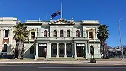 Orange has many attractions. There are bush walking trails in Orange including; Spring Glade Walking Track, Cook Park Heritage Walk, Summits Walking Tracks, Nangar National Park and Mullion Range State Conservation Area.[23]Borenore Caves is a series of limestone caves. Duntryleague Golf Club and Clubhouse, Mount Canobolas and Federal Falls in the Mount Canobolas State Conservation Area, Lake Canobolas, Gnoo Blas Motor Racing Circuit, the historic centre of Orange and the Orange Botanic Gardens are also near the town. Elephant Park, near Moulder Park, got its name from when circuses visited the town, and the elephants seen there.[24][25]