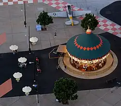 The Great Park Balloon is the park's signature attraction. On July 14, 2007, the balloon ride—designed and operated by Aerophile SA—was the first attraction to open in the park. It transports visitors to a height of 500 feet (150 m) for a panoramic view of the county and the construction of the park.[13] The balloon's gondola can fit 25–30 people.[14]