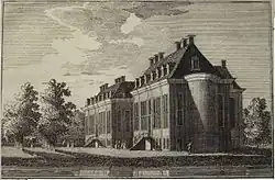 Countess Albertine Agnes of Nassau, widow of William Frederick, Prince of Nassau-Dietz, acquired what was then known as the Schoterswoud at Heerenveen, an estate consisting of several fields, forests and buildings. She built a palace and gardens there, which after her death were inherited by John William Friso, Prince of Orange, who commissioned Daniel Marot to build the Paleis Oranjewoud. Work began in 1708 and continued under John William's wife Marie-Louise, but it was never completed and after a period of neglect it was terminated. The current house on the estate was built in 1829.