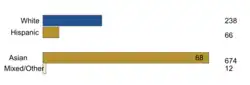 Orchard Hills has a population of 990.[5] Orchard Hills' majority group are Asian Americans who are 68 percent of the population, the rest being 24.1 percent White and 6.7 percent Hispanic/Latino. A majority of Orchard Hills residents are female. In addition, Orchard Hills has the highest percent of children out of the neighborhoods of Irvine.[6]