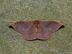 The wingspan is about 35 mm. Adults are a sericeous (silky) pale brownish-flesh colour (brownish mixed with the idealized colour of the skin of British people in 1892), sparsely irrorated (sprinkled) with small blackish dots. The forewings are crossed by two very indistinct oblique darker lines and there is a submarginal series of rosy spots on the veins. The hindwings have two whitish stigmata on the discocellulars.[3]