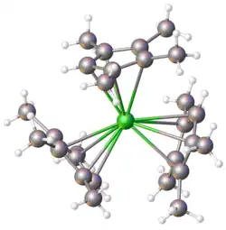 Some of the best characterized organocerium(IV) compounds feature cyclopentadienyl ligands, e.g. Ce(C5H5)3Cl[5]
