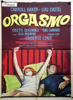 Orgasmo (Italian for "orgasm") is a 1969 giallo film co-written and directed by Umberto Lenzi and starring Carroll Baker, Lou Castel, and Colette Descombes. It follows a wealthy American socialite who finds herself preyed upon by two nefarious young siblings who indulge her with sex, drugs, and alcohol while she vacations at an Italian villa. This film helped launch the second phase of Baker's career, during which she became a regular star in Italian productions.[4]