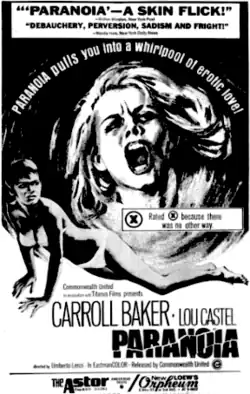 After its Italian premiere in February 1969, Orgasmo was released in the United States under the alternative title Paranoia later that same year. It was one of the first films to carry an X rating in the United States under the newly established Motion Picture Association film rating system, and this fact was sensationalized for its American promotional materials.