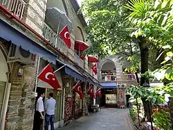 The hammam (public bathhouse) was a double hammam, meaning it had a men's section and a women's section built side-by-side. The men's section consists of a cold room, a warm room with attached latrines, a hot room with private rooms attached, and a furnace area. The women's section contains the same sequence but is smaller than the men's.[2] After the 1958 fire, the hammam was converted into a shopping complex known today as Aynalı Çarşı ('Mirrored Bazaar').[2][7] Two new entrances were opened and some of the original elements, such as the furnace, were removed.[2]