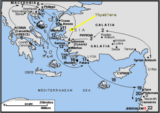 - ^ Philippi: Catholic Encyclopedia "Philippi was the first European town in which St. Paul preached the Faith. He arrived there with Silas, Timothy, and Luke about the end of 52 A.D., on the occasion of his second Apostolic voyage."