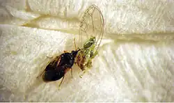 Orius minutus feeding on Trioza rhamni.