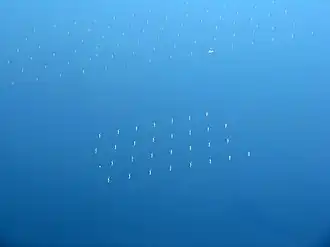 Construction started in 2010 and was completed in August 2011.[3][4] Prysmian provided submarine power cable connections including 27 km of 33 kV inter-array cables to connect the wind turbines and a 42 km of 132 kV export cable to connect the wind farm to the substation.[5][6] 30 turbines each with 5 MW nameplate capacity are provided by REpower and electrical works were to be carried out by Areva.[7] Steel foundations for generators were developed and designed by OWEC Tower and produced by Burntisland Fabrications.[8] Logistics and assembly services are provided by Harland and Wolff. Generators were installed by A2SEA.[9] The first four steel foundations were delivered in July 2010,[1] and were installed by a joint venture of Scaldis and Geosea BV.