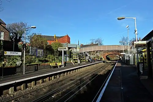 Orrell Park railway station is a railway station in Orrell Park, Liverpool, England. The station was opened in 1906 by the Lancashire and Yorkshire Railway, and was originally named Orrell Park Halt; this was simplified to Orrell Park by British Rail.[1] It is located to the north of the city centre. It also serves the nearby district of Orrell. It is on the Ormskirk branch of the Merseyrail network's Northern Line.