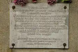 During World War II the Germans established and operated a subcamp of the Gross-Rosen concentration camp at the local sanatorium, whose prisoners were mostly Poles.[2] In February 1945, the Germans evacuated the prisoners to the Nordhausen concentration camp, leaving only those unable to walk in the camp.[2] The prisoners remaining in the camp were liberated by Soviet troops.[2] There is a memorial to the victims of the camp in the village.