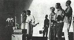 Throughout the period of February-September of 1970, Os Kiezos held their first major concerts at N'gola Cine for Luis Montez’s Kutonoca and Dia Do Trabalhador. It was also during the year of 1970 that they went on to record their first singles under Ngoma, a label from Zaïre that had a headquarters in Luanda. It was during this period that they met Minguito, a blind accordionist with his own conjunto, as well as Elias Dia Kimuezo, a relatively older and well respected singer, Urbano de Castro, the last two being relatively older artists who participated in the Kutonoca shows and had already gained popularity, as well as N’goma Jazz, an ensemble with members from various ethnic backgrounds.[10] Under the Ngoma label, Os Kiezos accompanied Urbano de Castro and Elias Dia Kimuezo. They recorded on a label that featured notable Congolese artists like Franco and his T.P.O.K. Jazz, Verckys et son Orchestre Vévé, Tabu ley Rochereau...