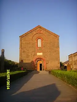 The Saint Mesrop Mashtots Church is located in the village of Oshakan. After the death of Mesrop Mashtots, Vahan Amatuni, a military leader, and Hmayak Mamikonyan, a powerful noble, transported his remains to Oshakan. Three years later, in 443 AD, Vahan Amatuni built a chapel in his honor. To commemorate Mashtots' legacy, Catholicos Hovsep I Hoghotsmetsi instructed Koryun to write about the life and work of Mashtots. Between 1875 and 1879, Catholicos Gevorg IV replaced the old chapel with a new basilica-style church.[3][4]