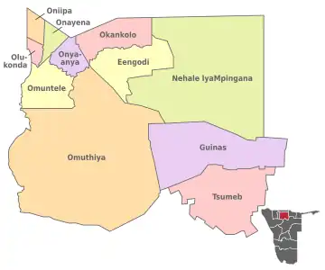 7. ^ Heita, Desie (13 November 2015). "Oshikoto scores big in development budget". New Era.