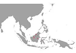 Osphronemus septemfasciatus is a species of giant gourami, a type of Southeast Asian freshwater fish from the family Osphronemidae.[2] It is endemic to the island of Borneo where it is found in the Malaysian state of Sarawak, in Brunei, and the Indonesian provinces of West Kalimantan, East Kalimantan and North Kalimantan. It is found in large slow-flowing rivers where it prefers the main channels, although juveniles also occur in large tributaries near the main river.[1] Like its relatives, it is known to be an obligate air-breather.[2] The largest recorded specimen of O. septemfasciatus, which possibly also is the largest giant gourami, was caught in Sarawak and it was 72.4 cm (28.5 in) in standard length, 87.2 cm (34.3 in) in total length and 20.5 kg (45 lb) in weight.[3]