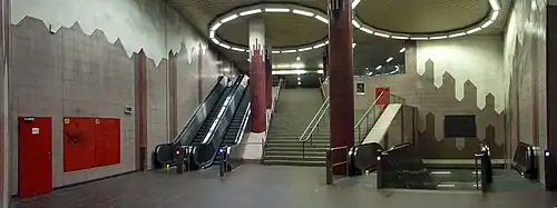 Frankfurt Ostendstraße station is an underground S-Bahn station in central Frankfurt am Main, Germany. The station was opened when the City Tunnel was extended to Frankfurt South station in 1990. It consists of two tracks, one each side of a central platform.