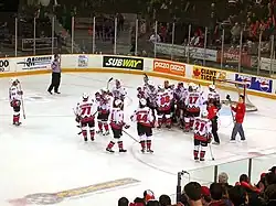 Over the years, the team has hosted events in other local arenas, such as the Corel Centre (now named the Canadian Tire Centre), where in 2004, they played a game against the Kingston Frontenacs that was viewed by an CHL-record crowd of 20,081.[43] In early February 2012, it was announced that the 67's would move to the Canadian Tire Centre for two seasons while renovations were finished at TD Place Arena. This came as a result of delays in construction originally planned to allow the 67's to stay at TD Place through the rebuild but a closed site was needed to meet deadlines for NASL and CFL expansion.[44] The team returned to TD Place Arena in August 2014 ahead of the 2014–15 season.[45]