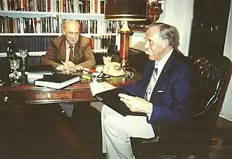 Historian Anton Joachimsthaler, who wrote a number of books about Hitler, cited Günsche's statements and court testimony in his exhaustive book on Hitler's death, first published in 1995.[34] He also interviewed Günsche directly about the events and statements of others as to Hitler's death and aftermath.[35] Joachimsthaler did conclude, based on the evidence, that Günsche was mistaken as to the position of where Hitler was sitting when first observed after death and criticized him and Linge for delegating the task of the actual burning of the corpses to SS officers Ewald Lindloff and Hans Reisser.[36]