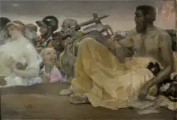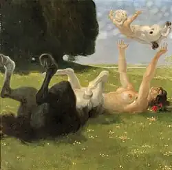 At the beginning Soltau painted portraits as well as naturalistic animal pictures. In addition, he drew caricatures that mocked the military worship of the bourgeoisie, which was widespread at the time. From 1909 to 1912 he lived in Munich and turned to symbolist content in his painting, including: themes of antiquity and the Bible took up. The result was the painting The Centaur Playing with Her Child and the lithograph David (1910), which was distributed as a calendar sheet in 1913. After moving to Berlin, he concentrated on Nordic mythology, which he had already learned from the stories his mother told him in Arnis. The main reason for this reorientation was probably the contact with the folk-minded Karl Storck, a musicologist, and the writer Lulu von Strauss und Torney.[3]