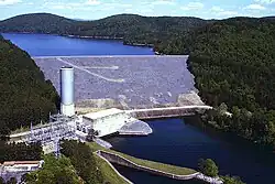 A 337-mile-long "Ouachita–Black Rivers Navigation Project" began in 1902, to create a navigable waterway from Camden, Arkansas to Jonesville, Louisiana, and when completed in 1924 included six locks and dams that were 84 feet wide and 600 feet in length, having from 3 to 5 tainter gates. Including the Black River the total navigable length is 351 miles.[12] The Ouachita-Black Rivers Navigation Project has less than a million tons of shipping annually which has the likely prospect of the future withdrawal of federal support. The project's system of dams and locks enhances the river's recreational use and regional water supply.[13]