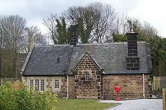 The station, which lies between Wadsley Bridge and Deepcar was opened on 14 July 1845 and closed on 15 June 1959.[2] The old station house is a grade two listed building constructed from gritstone[3] and has been used for industrial purposes for a number of years. In 2008 it was renovated and converted into a house. When the station was still in use, the goods sidings were used for carrying wood pulp to the nearby paper mill and also freight to and from the Oughtibridge silica works.[4]