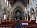 The church is situated in Avoca Street, Randwick, adjacent to the commercial centre of the area. It was designed by Sheerin and Hennessy in a Gothic Revival style and built in 1888. It consists predominantly of brick with sandstone trimmings, with a spire on its southern side. Inside, there is a trussed timber roof and a stained-glass window behind the altar. A Gothic-style octagonal chapel and shrine are located near the altar.[2]