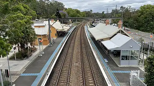 Ourimbah railway station is a heritage-listed railway station located on the Main Northern line in New South Wales, Australia. It serves the northern Central Coast suburb of Ourimbah opening on 15 August 1887.[3][4] The station had passing loops and a freight yard that were removed in March 1993.[5]