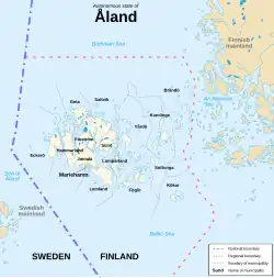 Åland – an autonomous, demilitarized, Swedish-speaking region and historical province of Finland, located in the Baltic Sea at the entrance to the Gulf of Bothnia. Governance is primarily handled by the Government of Åland, separate from Finland’s central administration.