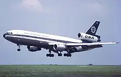 Overseas National Airways (ONA) Flight 032 was a non-scheduled positioning flight operated by Overseas National Airways with a McDonnell Douglas DC-10-30CF.[1][2] On November 12, 1975, the flight crew initiated a rejected takeoff after accelerating through a large flock of gulls at John F. Kennedy International Airport, resulting in a runway excursion. Of the 139 aircraft occupants, all survived, while the aircraft was destroyed by an intense post-crash fire.[3] The National Transportation Safety Board concluded that the probable cause of the accident was bird ingestion into the right-hand engine, causing an uncontained engine failure that ruptured several landing gear tires and disabled the engine's hydraulic system, in turn partially disabling the spoilers and the landing gear brakes. Contributing to the accident was the resultant failure of the affected engine's thrust reverser and the wet runway.[1] The accident aircraft is claimed to be the largest commercial airliner ever destroyed due to a bird strike.[4]