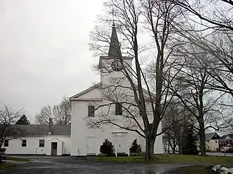 Owasco Reformed Church, also known as Reformed Dutch Church of Owasco, is a historic Dutch Reformed church located at Owasco in Cayuga County, New York. It was built in 1811-1815 and is a large, rectangular, Federal-era frame meeting house at the core of the hamlet of Owasco. Also located on the property is a two-story, Queen Anne style parsonage built in 1886-1888 and a gable roofed frame barn.[2]