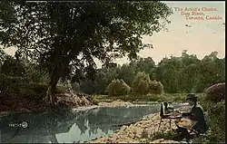 From 1888 to 1908, Staples worked for the Telegram as a staff artist, reporter, and political cartoonist,[3] and illustrator for the J. Ross Robertson Collection.[4] The Battle of York is an example from this collection. Thereafter, Staples became a well-known artist, illustrating a number of books, executing commissioned murals, and producing a vast oeuvre of paintings, watercolours and etchings. Robertson also commissioned Staples to paint several large canvases of historical subjects.[5] Seven of these works now hang in Toronto's New City Hall. He continued to write and illustrate numerous articles for the Telegram on various topics.