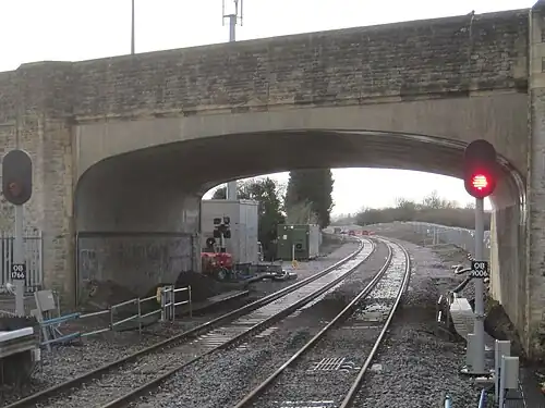 On 1 April 1854 the Buckinghamshire Junction Railway (often known as the Yarnton Loop) was opened, between Oxford Road Junction and Yarnton Junction.[4] The former junction was constructed just to the south-west of Oxford Road Crossing, although the two routes did not diverge until a point somewhat further to the south-west, at grid reference SP499116.[5]