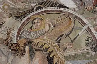 Oxyathres (Ancient Greek: Οξυάθρης; in Old Persian Vaxšuvarda; lived 4th century BC) was a brother of the Persian king Darius III Codomannus. He was the son of a certain Arsames, and grandson of Ostanes. He was distinguished for his bravery and talent,[1] and in the Battle of Issus, 333 BC, took a prominent part in the combat in defence of the king, when attacked by the Macedonian cavalry under Alexander himself, as shown in the celebrated Alexander Mosaic found in Pompeii.[2] He afterwards accompanied Darius on his flight into Bactria, and fell into the hands of Alexander during the pursuit, but was treated with the utmost distinction by the conqueror, who even assigned him an honourable post about his own person; and subsequently devolved upon him the task of punishing Bessus for the murder of Darius.[3] He was also the father of Amastris queen of Heraclea.[4]