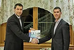 ![]() Mihalovics (right) with János Lázár in 2010 | |
