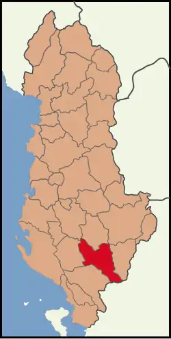 Përmet District (Albanian: Rrethi i Përmetit) was one of the 36 districts of Albania, which were dissolved in July 2000 and replaced by 12 newly created counties. It had a population of 25,837 in 2001, and an area of 929 km2 (359 sq mi).[1] Its area has an Aromanian minority.[2][3] It is in the south-east of the country, and its capital was the town of Përmet. Its territory is now part of Gjirokastër County: the municipalities of Përmet and Këlcyrë.