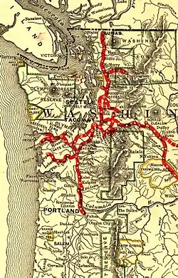 - ^ Schwantes, Carlos A. (1993). Railroad Signatures across the Pacific Northwest. Seattle: University of Washington Press. pp. 52–53. ISBN 0-295-97535-0.