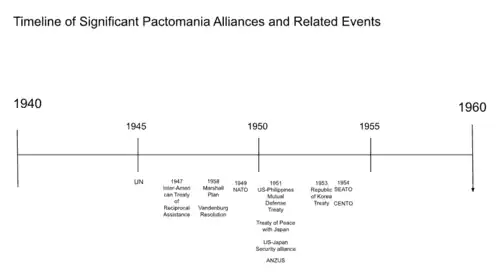 Pactomania is a term originally created to describe the period between 1945 and 1955, during which the United States concluded or ratified a significant amount of alliances, treaties, and pacts. The word "Pactomania" was first used in a The New York Times article in 1955.[1]