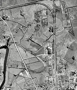 Minister of Public Works, Bob Semple, turned the first sod on 27 January 1938 at Paeroa[19] and about 32 mi (51 km) of the 42 mi (68 km) line had been started[20] when work was abandoned in 1940.[21] Work was still making slow progress in 1950, when a paragraph in the Ministry of Works annual report said 20 private crossings had been formed and metaled and 456 ft (139 m) of culverts installed.[22] In 1954 it was noted the major cost would be a £3100, 30 ft (9.1 m) bridge across the Waihou, the abutments already being in place.[3] Most of the work was still in place in the 1960s.[23]