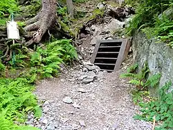 The Pahaquarry Copper Mine is an abandoned copper mine located on the west side of Kittatinny Mountain presently in Hardwick Township[2] in Warren County, New Jersey in the United States. Active mining was attempted for brief periods during the mid-eighteenth, mid-nineteenth, and early twentieth centuries but was never successful despite developments in mining technology and improving mineral extraction methods. Such ventures were not profitable as the ore extracted proved to be of too low a concentration of copper. This site incorporates the mining ruins, hiking trails, and nearby waterfalls, and is located within the Delaware Water Gap National Recreation Area and administered by the National Park Service. It was added to the National Register of Historic Places in 1980 as a contributing property to the Old Mine Road Historic District.[3]