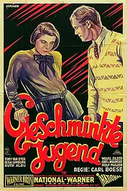 Painted Youth (German: Geschminkte Jugend) is a 1929 German silent drama film directed by Carl Boese and starring Toni van Eyck, Wolfgang Zilzer, and Olga Limburg.[1] It was shot at the National Studios in Berlin. The film's sets were designed by Karl Machus.